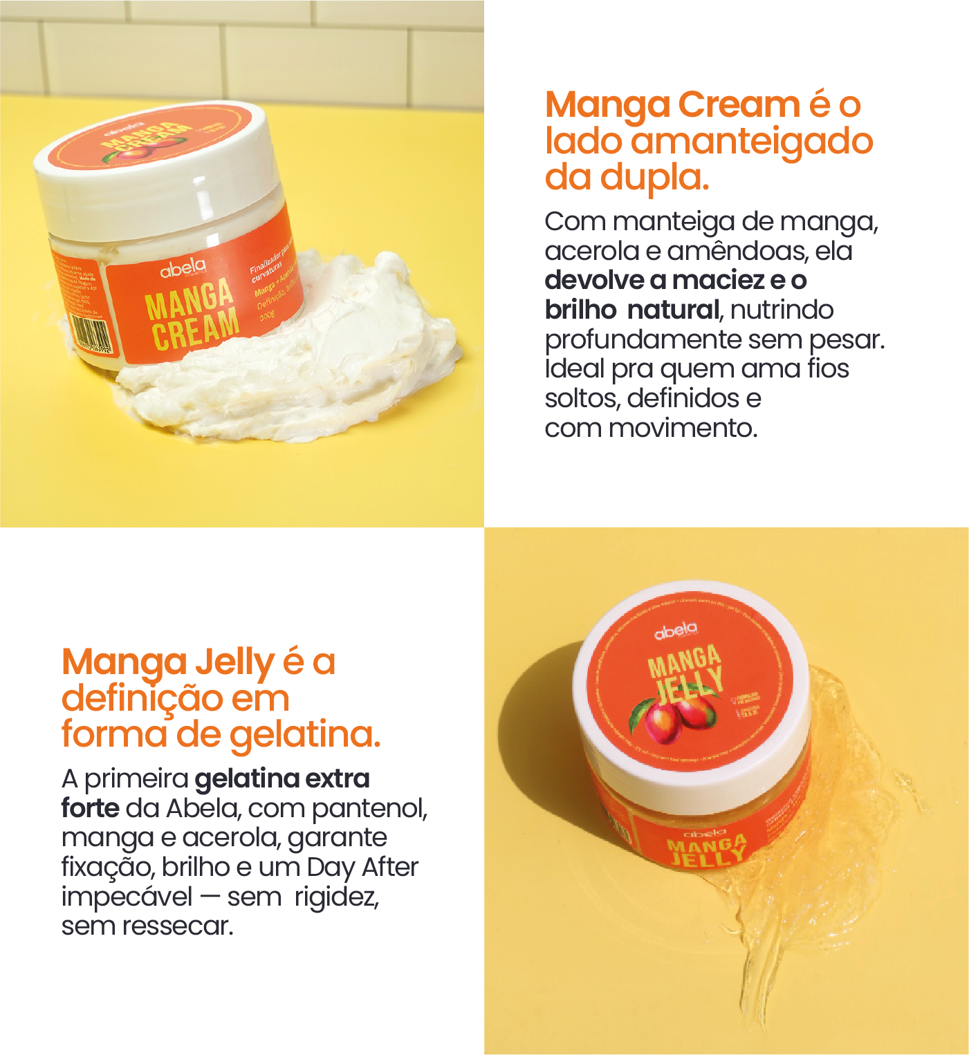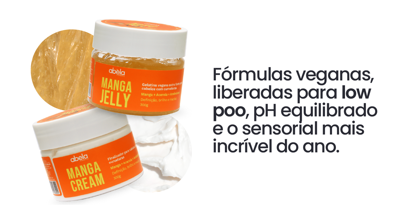 Enquanto o Manga Cream repõe lipídios e sela as pontas, a Manga Jelly mantém a definição e o controle do frizz, preservando o formato natural da curvatura por mais tempo.